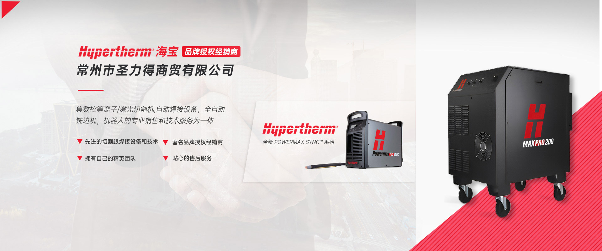 常州市圣力得商贸有限公司是一家集数控等离子/激光切割机,自动焊接设备,全自动铣边机,机器人的专业销售和技术服务为一体的公司。本公司是世界品牌Hypertherm(美国海宝)公司的授权经销商?! 」臼且恢Ъ际跷榷ā⒎裼帕肌⒏挥谐木⑼哦?。公司致力于将国外先进的切割跟焊接设备和技术介绍给中国的机器制造商和终端用户,并为用户提供品质的产品和完善的售后服务。  公司主要代理以下产品:  1.美国海宝Hypertherm等离子机用电源,手持电源,原装易损件及备件  2.韩国赛拉科(CERACO)铣边机,南京顶瑞自动焊接小车  3.迈誓坦(MicroStep),日本田中(TANAKA),武汉法利莱(FARLEY-LASERLAB),江苏博大品牌等离子切割机,激光切割机及维修配件?! ?.美国海宝,美国飞马特,凯尔贝等原装正品易损件及配件  5.激光切割机,等离子切割机,火焰切割机升级,安装与调试及技术升级改造项目  6.机器人焊/切生产线  热忱欢迎广大用户前来询价及洽谈。